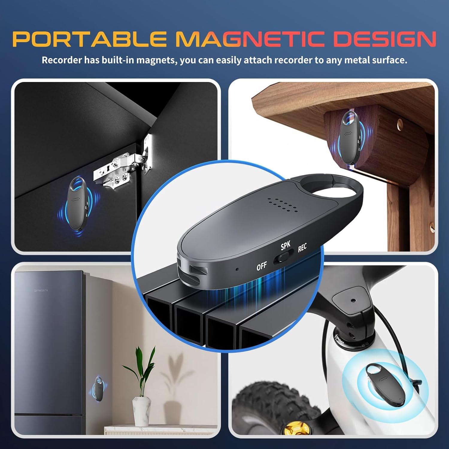 Home > Digital Voice Activated Recorder With Playback, 4-in-1 Mini Magnetic Keychain Audio Recorder With AI Noise Cancelling, Small Voice Device For Lec